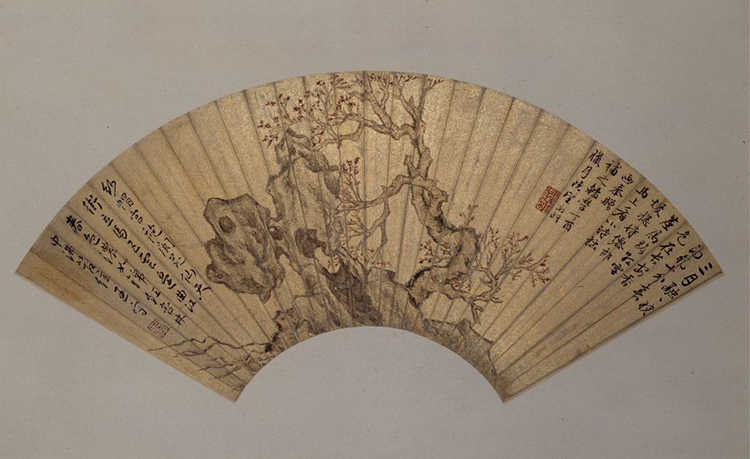 明•文徵明 红杏湖石图扇页 故宫博物院藏