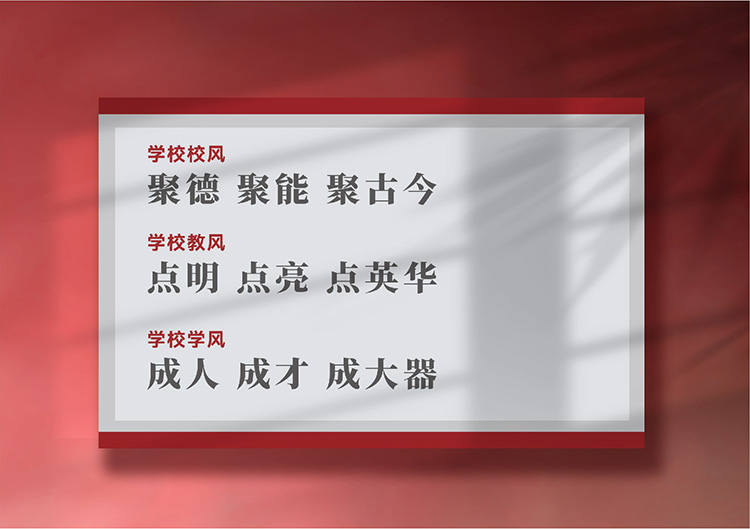 “府学”二字,是文化,是教育,是品牌,是学校发展的主脉。结合学校的“魁星阁”“大成殿”这两个校园中的重要文化符号,进而以“魁星”连接卓越,以“大成”连接未来,是为——府聚魁星,学为大成。